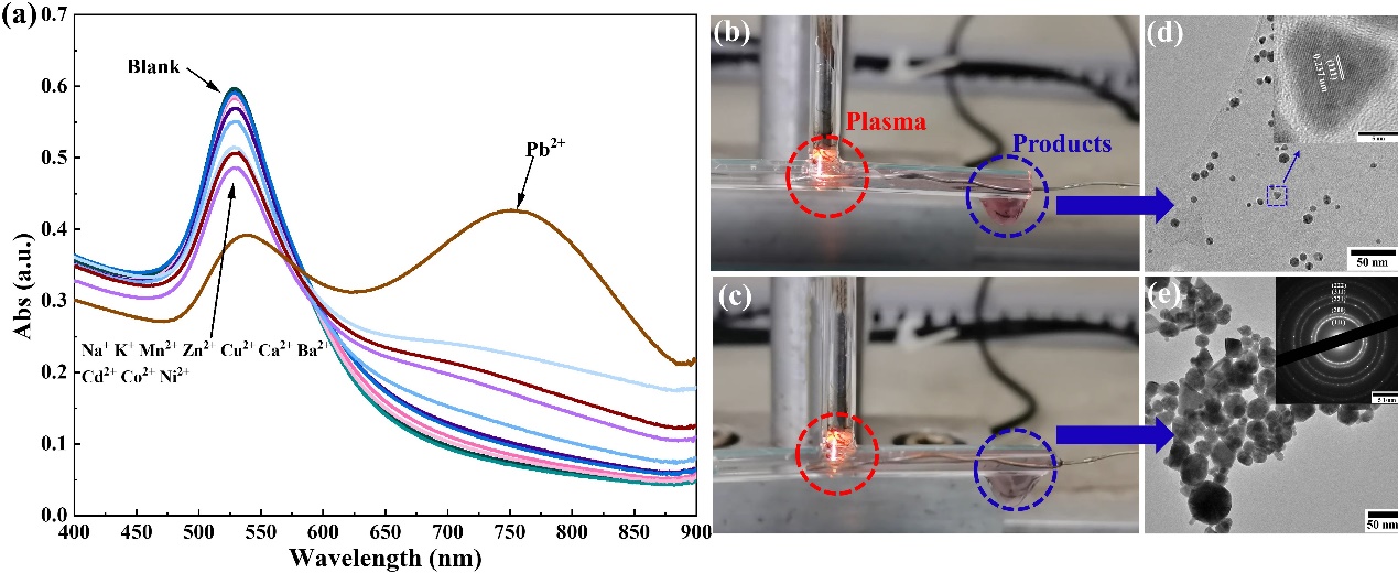 图2. CES:微流控等离子体原位制备纳米金比色传感器及铅离子的在线检测