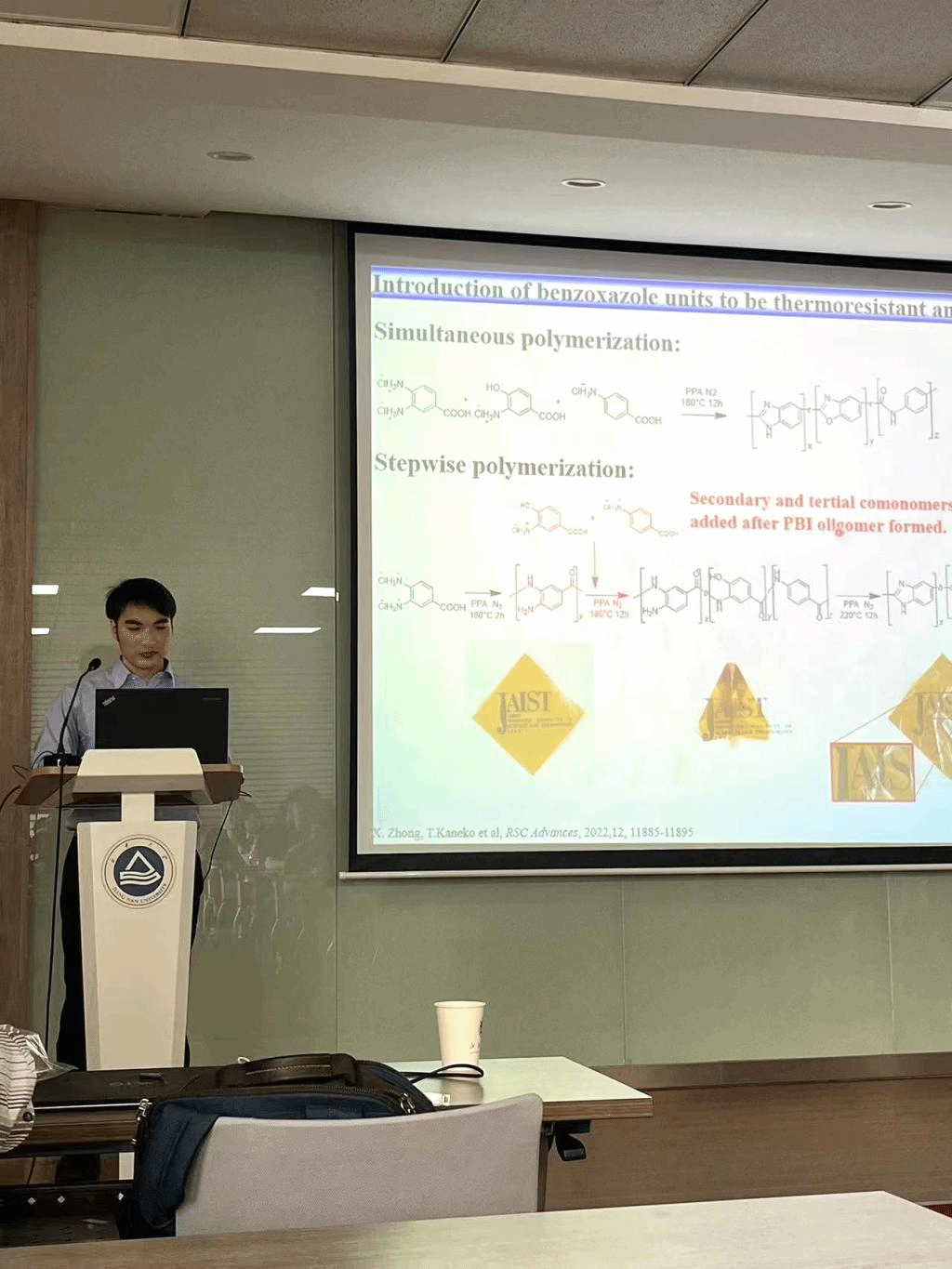 2023年4月20日上午,日本北陆先端科学技术大学院大学Tatsuo Kaneko教授与钟显铸博士应邀来我院进行学术交流并在化工楼A316会议室进行了学术报告。施冬健教授主持了此次报告会。