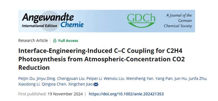 近期,betway中国西汉姆联官网焦星辰教授、陈庆霞副教授与马普所李小东博士合作,在光催化CO2还原制C2燃料方面取得重要进展,相关工作在“Angew. Chem. Int. Ed.”上发表:Interface-Engineering-Induced C–C Coupling for C2H4 Photosynthesis from Atmospheric-Concentration CO2Reduction。该论文化工学院2023级硕士研究生杜佩津、2022级硕士研究生丁金钰为共同第一作者。