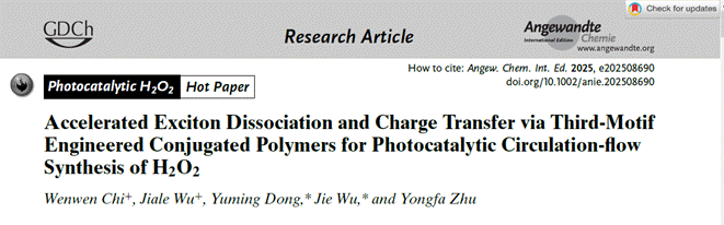 近期,我校betway中国西汉姆联官网董玉明/朱永法团队在光催化制备双氧水方面取得重要进展,研究成果“Accelerated Exciton Dissociation and Charge Transfer via Third-Motif Engineered Conjugated Polymers for Photocatalytic Circulation-flow Synthesis of H2O2”在线发表于Angew. Chem. Int. Ed.,研究成果“Customizing Oxygen Reduction Reaction Pathways for High-Efficiency H2O2Photosynthesis by Anionic Intermediate-Generating Polymer Photocatalysts”在线发表于Adv. Funct. Mater.。