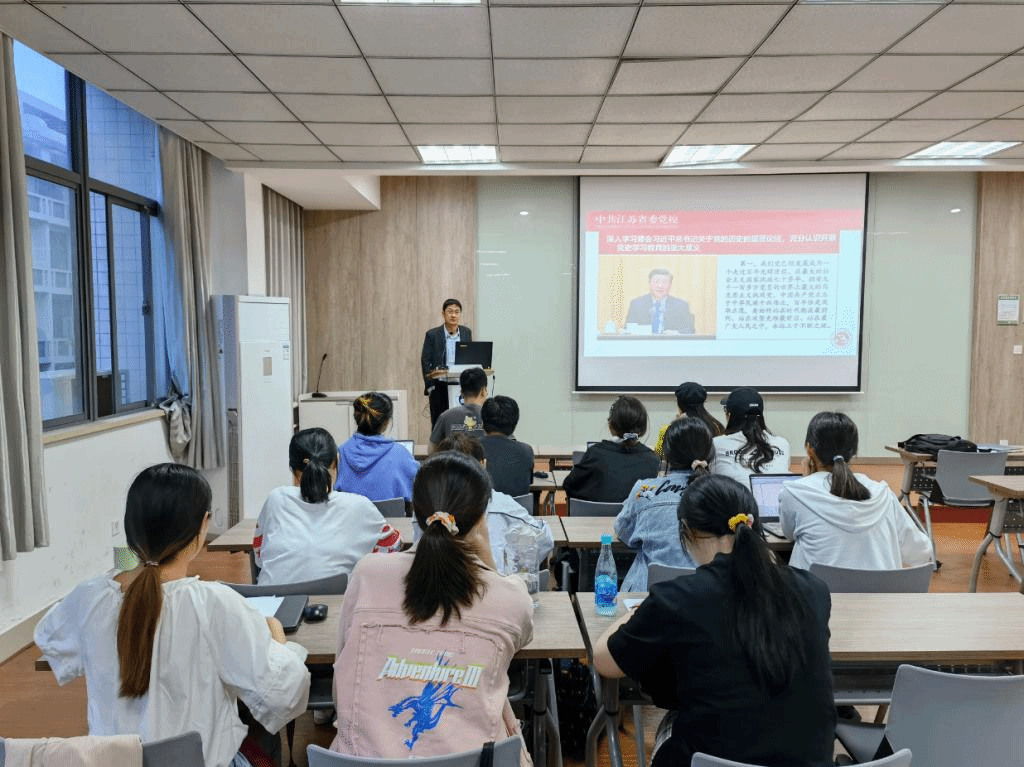 董玉明从九大方面详细介绍了习近平总书记关于党的历史问题的重要论述,使与会学生党员充分认识到开展党史学习教育的重大意义。董玉明分四个阶段对中国共产党党史进行了介绍,讲诉了中国共产党人从开天辟地、改天换地、翻天覆地到如今经天纬地的历史,回顾中国共产党的百年历史,这是一部感天动地的战斗史,也是一部带领全国人民从站起来、富起来到强起来的奋斗史。此后,董玉明列举了新中国七十多年发展所完成的两大奇迹——世所罕见的经济快速发展奇迹、世所罕见的社会长期稳定奇迹,这两大奇迹是我们党执政成就和国家治理成效的重大标志。他强调,中国共产党成功的原因有三:其一,中国共产党有强大的领导能力;其二,中国共产党有科学理论的指导,同时不断推进马克思主义中国化、时代化、大众化;其三,中国共产党有人民群众的支持。