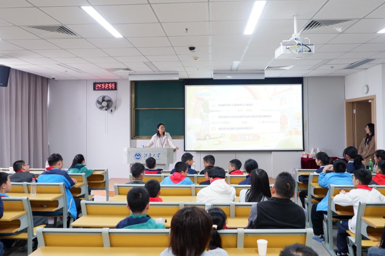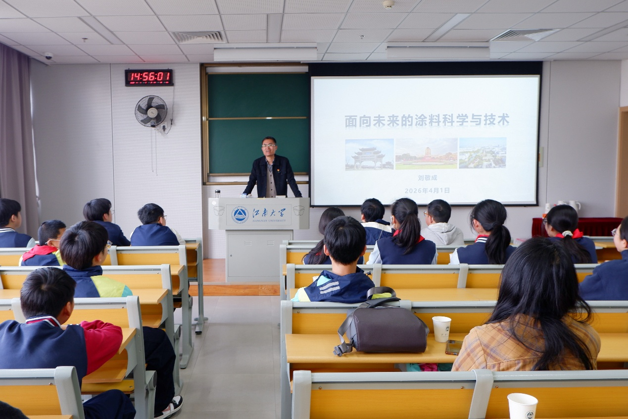 同时,功能高分子材料研究室开展凝胶科普实验,志愿者介绍水凝胶在医用敷料、“水宝宝”等生活中的应用。趣味实验里,研究生演示凝胶吸水膨胀、形态变化等现象,同学们亲手制作凝胶作品,在实践中感受材料科学的乐趣。最后,学院刘敬成、施东健教授分别带来专题科普讲座,结合生活与航空航天案例,讲解涂料及功能高分子材料知识,并互动答疑,激发了同学们的科学探索兴趣。