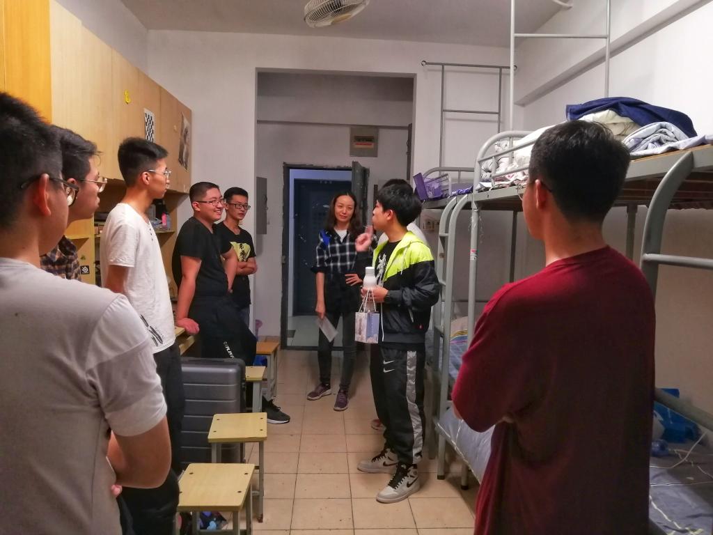 在了解入住情况的同时,各班主任及副班也通过交谈初步了解班级里所有学生的基本情况,在进一步了解自己班级的同学的同时,也为第二日的班会及之后的班级建设工作打下了基础。