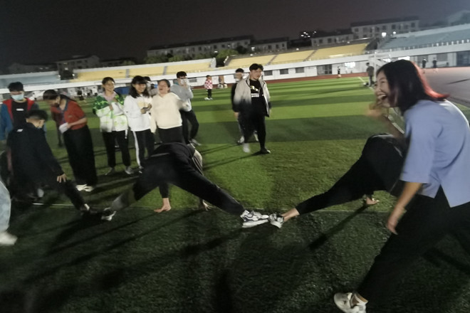 在三月的春日小型团建中,班级同学已经领略了江南大学春日的景色。即使是在疫情之下,春日还是那么温暖且多彩。和往常不同,这次班级同学将活动时间放在了晚上,同学们一起在操场上享受晚风习习和江大的操场夜景。