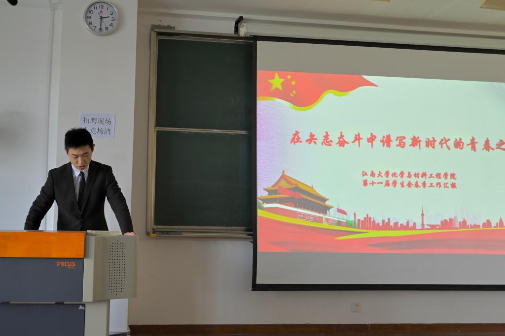 会议开始,全体学生会成员起立共同歌唱江南大学校歌。随后,各部门从新晋成员介绍、工作成果、工作不足、对未来的发展规划等方面对上一年度工作进行了总结汇报。同时,学生会主席团的三位主席与各部门负责人进行了交流与沟通,既表达了对去年各部门工作成果的肯定,也对一些工作中出现的问题给予了一些建议。