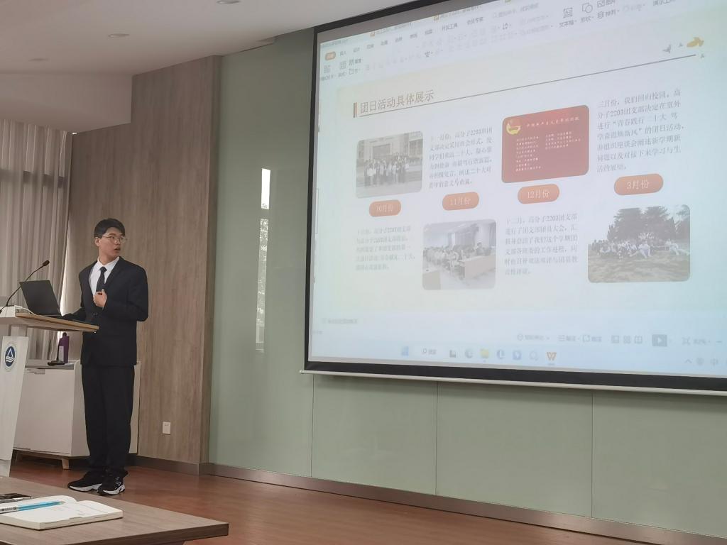 争创答辩开始,各团支书根据抽签顺序依次上台展示。他们围绕思想引领、组织建设、学风建设、特色工作、未来建设设想等方面汇报团支部的建设情况,凝练支部工作特色,积极构建支部发展路线。答辩图文并茂、条理清晰、重点突出,展现了各个支部独特的魅力和风采。展示环节完毕,评委们进行了点评并结合展示内容,对团支书进行了提问。经过评审,应化2103班团支部、化工2102班团支部、高分子2201班团支部成功获评“雷锋特称团支部”,高分子2202班团支部成功获评“任国庆特称团支部”。