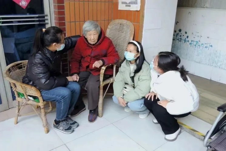 志愿者与老人交谈