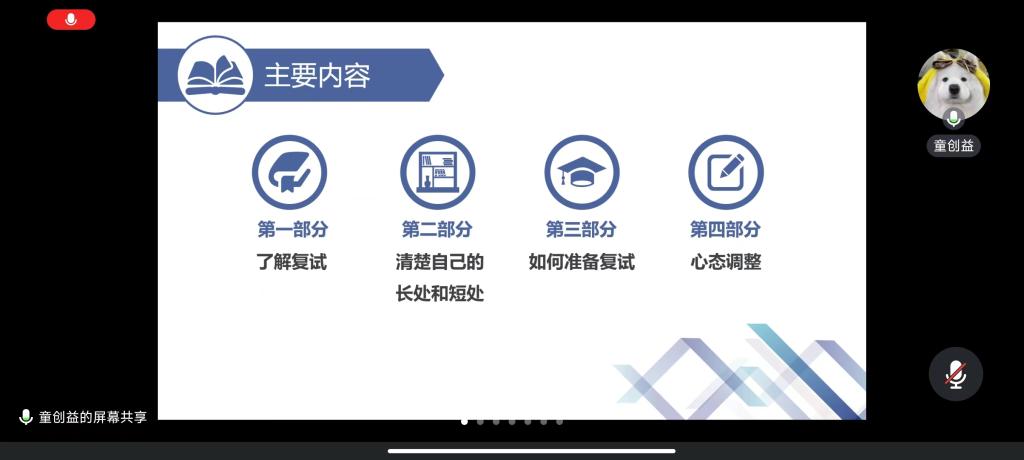 紧接着,东南大学的童创益建议同学们要清楚自己的优劣势,认识自己,善于发现自己的长处,同时也要掌握对手。他认为心态的调整至关重要,复试一定不能松懈,打起精神,坚持到最后一刻。