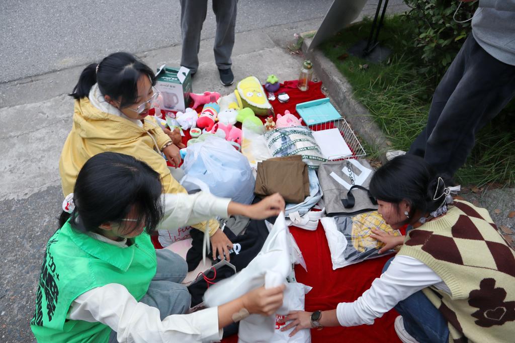 秋风飒爽,天气渐凉。小雨淅淅沥沥,但志愿者们热情不减,早早准备就绪,做好前期准备工作。此次活动收集闲置衣物、玩偶、书籍和其他实用物品进行回收捐赠️,其中部分物品还会进行现场义卖,义卖所得钱款尽数捐于红十字会。