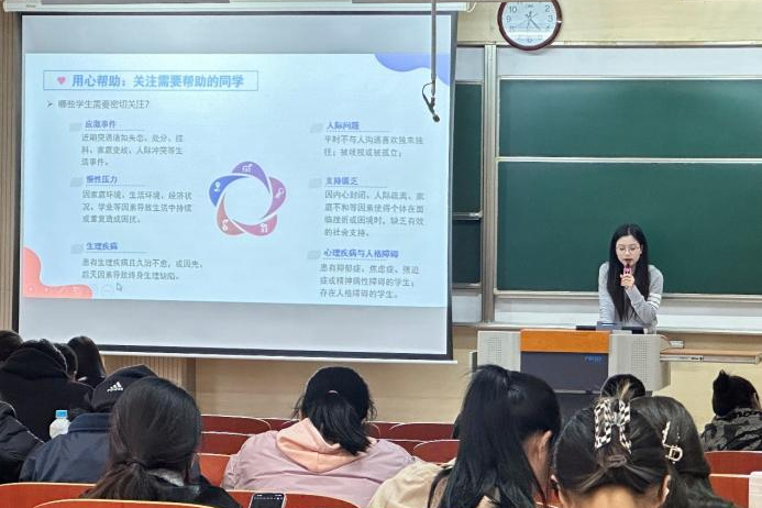 为进一步提升学院心理健康教育网格化队伍业务能力与建设水平,充分发挥朋辈心育力量,筑牢健康安全“防护网”,betway中国西汉姆联官网于11月21日在蠡湖校区一教1B103教室举办“健康守门员”赋能计划第四期培训。本次培训由学院心理辅导员郝林青主讲,学院全体本科生心理委员、2024级本科生宿舍长以及全体研究生网格员参与培训,东氿校区同步线上观看。