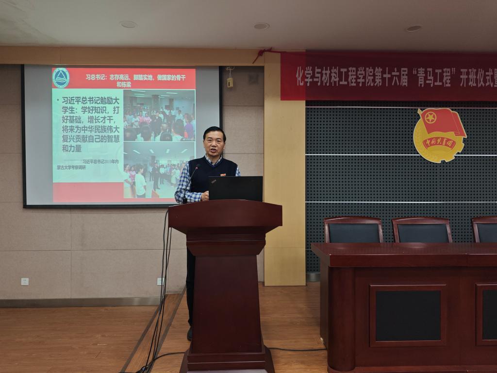 12月12日下午,betway中国西汉姆联官网第十六届“青马工程”开班仪式暨第九期入党积极分子培训在化工楼B329会议室举办。学院党委副书记、副院长董霞,学院关工委委员、校特邀报告员、特邀党建组织员蒋平平、学工办主任兼分团委书记鞠峰,2021级本科生辅导员、党建辅导员郝林青,2024级本科生辅导员马之禾,第十五、十六届“青马工程”学员以及第九期入党积极分子150余人参加本次活动,活动由分团委学生副书记刘亦菲主持。