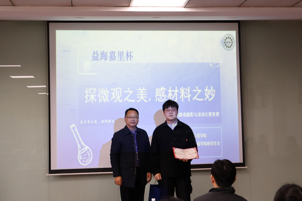 为记录材料微观世界的精彩,引导学院研究生领会材料科学的艺术之美,感受材料微观世界的奇异,激发对材料科学的研究兴趣,12月25日,学院在化工楼A316举办益海嘉里杯“发现美”活动之材料微观摄影比赛和我与材料的故事演讲比赛决赛。学院党委书记潘庆伟,党委副书记兼副院长董霞,副院长马丕明,学生导师杨伟军、洪建权、黄晶,以及研究生班主任苏慧参与活动。本次比赛由辅导员李晓洁主持。