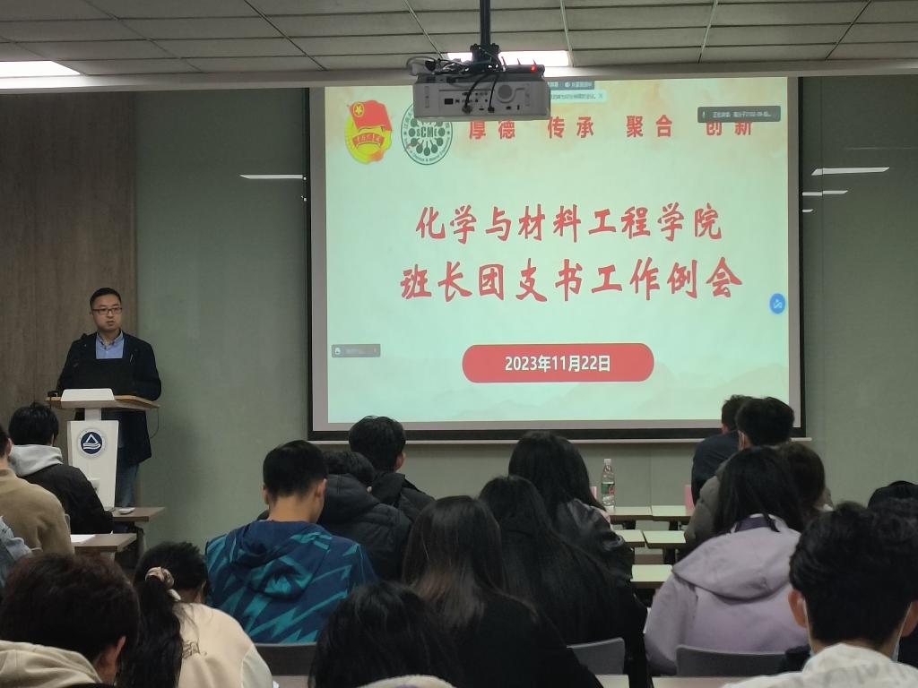 鞠峰介绍近期学院团学工作开展情况,表示团支部工作积极性的提升对我院团委工作的开展非常重要,只有团支部有条不紊地开展各项工作,分团委才能更有活力,学院才能建设得更好。希望全体班长团支书要在班级内发挥模范作用,带领团支部全体同学积极学习理论,从思想上紧跟步伐。分团委副书记高持恒梳理了近期团支部的常规工作,包括智慧团建系统团员信息完善以及青年大学习的开展等工作,希望各团支部认真落实日常工作,积极配合分团委各项安排。