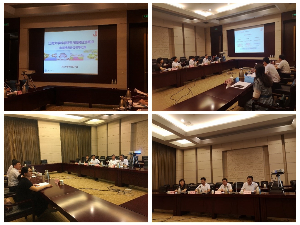 会上,董玉明副院长从学校概况、学科建设、人才培养、科学研究、社会服务等方面介绍了校院基本情况,并重点就科技合作、科研成果培育转化作了详细介绍。淄博市工信局新材料新医药产业发展中心副主任陈纪余具体介绍了淄博市各知名企业,对目前企业存在的一些问题进行了探讨,希望能与我校在多方面展开合作。淄博市科技局四级调研员胡冰重点介绍了市外校城融合发展战略,解读了2020年淄博市重点研发计划。淄博市教育局唐勋副局长介绍了淄博市基础教育情况,希望淄博市能成为江南大学的优质生源基地,同时也希望江南大学输送大批优秀毕业生到淄工作。