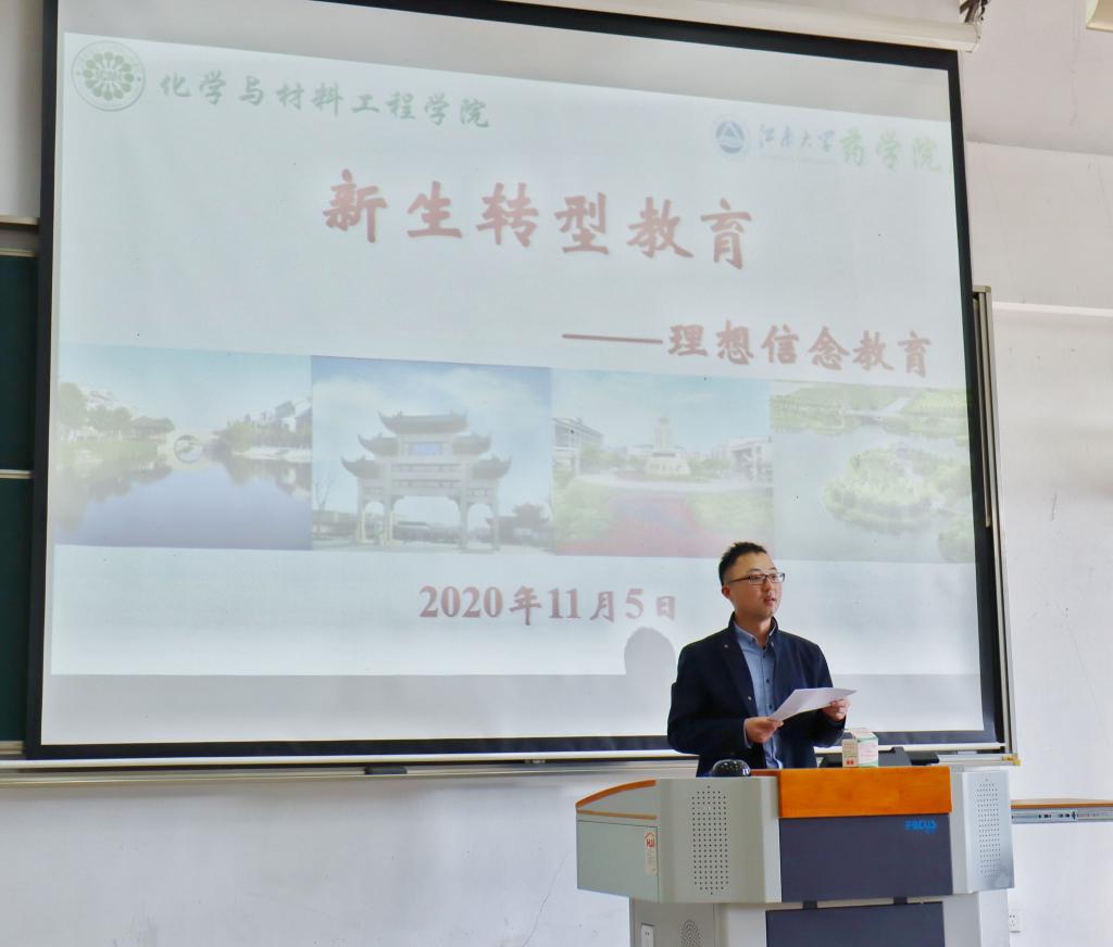 11月5日下午,新生转型教育——理想信念教育篇在2A127举行。原无锡轻工大学校党委副书记、副校长,现无锡市关工委报告员、江南大学校关工委顾问、党委兼职组织员李宗元老师为我院新生开展了一场别开生面的新生教育,学院党委副书记田卫平、辅导员鞠峰及2020级应用化学及高分子材料与工程专业学生参加此次讲座。