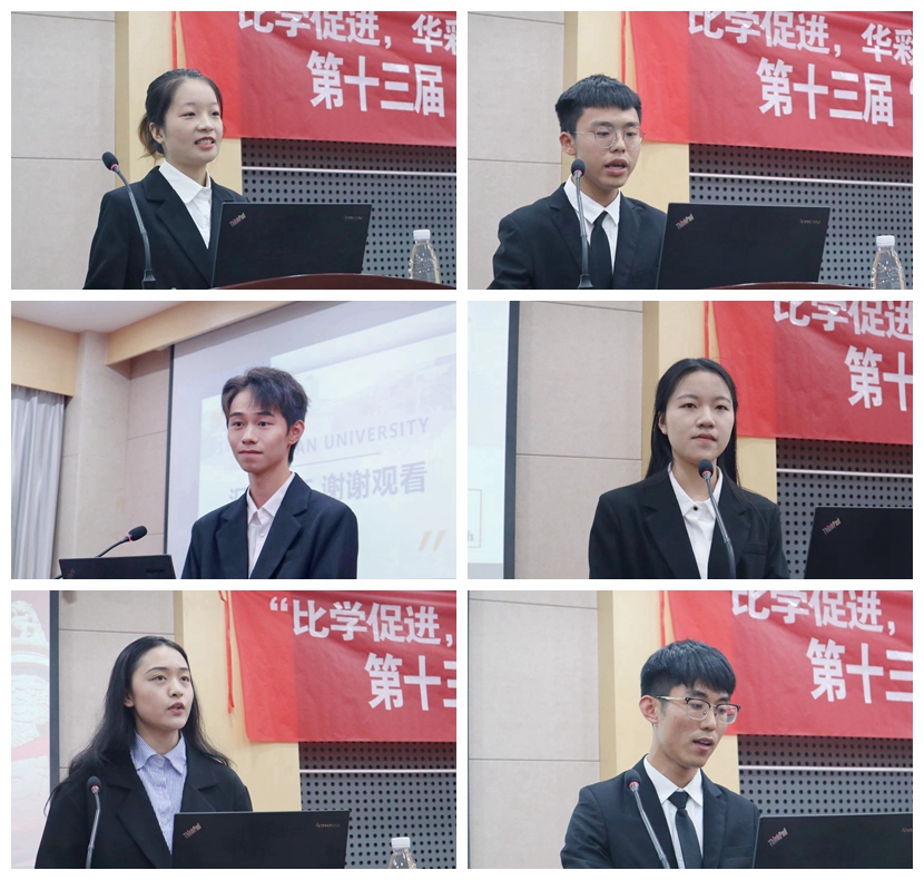 15位同学依次上台答辩,尽展风采。不断挑战自我的朱明月用自身经历努力诠释有理想有担当的应化人,甘于奉献的于杨露将爱的种子洒满逐梦的江南,敢做敢想的毛羽茜致力家乡发展、创造自身社会价值,踏理想之实的张诗茹在建设班级和服务同学中稳步提升,心怀理想的吴家驹抱着矢志不渝的钻研态度保持应化人的本心,尽职尽责的杨光新在勤恳工作中闪烁星光,初生牛犊李子洋心怀理想、为应化注入新鲜的“血液”,多才多艺的林伟向同学们证实兴趣与学习可以相辅相成,严谨负责的高持恒在学习生活中坚持创新、敢于创新,笃行致远的陈思雨凭借努力和实践在追梦道路上越行越远。