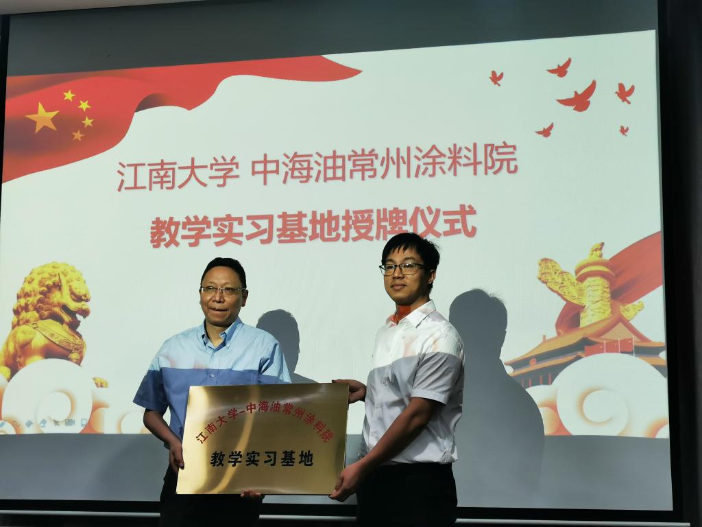刘仁院长与朱东总工程师经理共同为江南大学-中海油常州涂料院“教学实习基地”揭牌