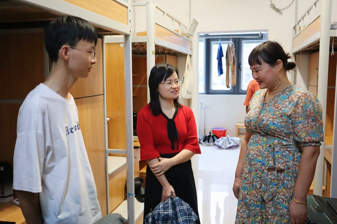 家长会后,学院党委副书记、副院长董霞、分团委书记、学工办主任鞠峰、新生辅导员马航威走访新生宿舍。“来自哪里啊?”“大学生活适不适应啊?”“校园目前有多走动了解一下吗?”亲切的问候让同学们在阴雨连绵的江南感受到了来自化工学院的温暖。领导与同学们聊到了校园生活的方方面面,也谈到了未来四年的学业规划,在走访的过程中,领导们也感受到了不同的宿舍氛围……老师们在送去温暖的同时还对宿舍进行了安全排查,确保新生入住的安全性和舒适性。