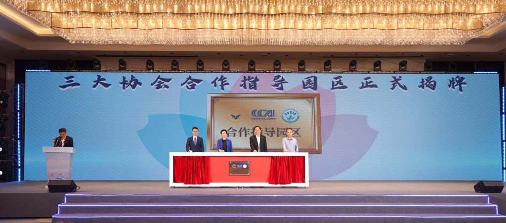 随后,陈卫、颜江瑛、卢敏、张春平、崔荣国、倪松涛、边峰、盛斌,共同为“江南美湾·梅里古镇”无锡美丽健康产业园开园剪彩。倪松涛与新吴区委常委朱晓峰签订江南大学与无锡高新区合作协议。颜江瑛、崔荣国、边峰、盛斌共同为中国香料香精化妆品工业协会、中国洗涤用品工业协会、中国口腔清洁护理用品工业协会“合作指导园区”揭牌。