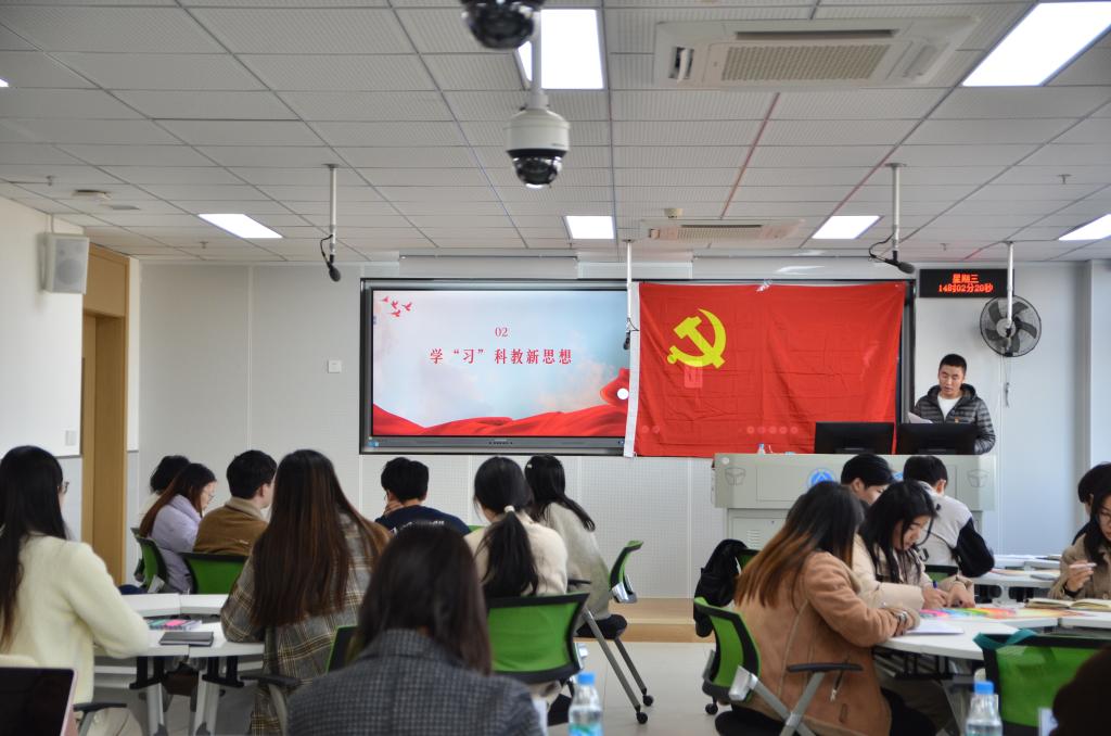 随后,张喆同志以“科教兴国育人才 踔厉奋发建新功”为题,领学新时代新征程赋予科教兴国战略新内涵;丁奕丹同志通过分享科学家故事,重点学习了“中国材料学之父”师昌绪和中国工程院院士超导材料专家周廉的爱国奉献、努力拼搏的事迹。于瑶同志以“弘扬科学家精神,做科技强国逐梦人”为题,分享作为新时代青年如何将科学家精神同科研具体实际相结合。学生导师张旭结合自己的成长经历分享了自己在科研实践中的思考和尝试,并勉励学生党员,身为科研工作者要能够把握正确方向,坚持不懈,努力成为党和国家事业的建设者和接班人。