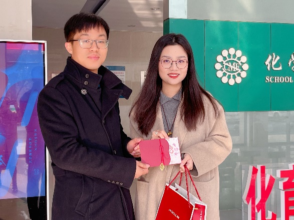 38日早晨,学院大厅传来阵阵祝福和欢笑声。学院领导潘庆伟、刘仁、王靖、董霞等热情地为女教工赠送节日卡片和小礼品,向女教工们送出节日的美好祝福。