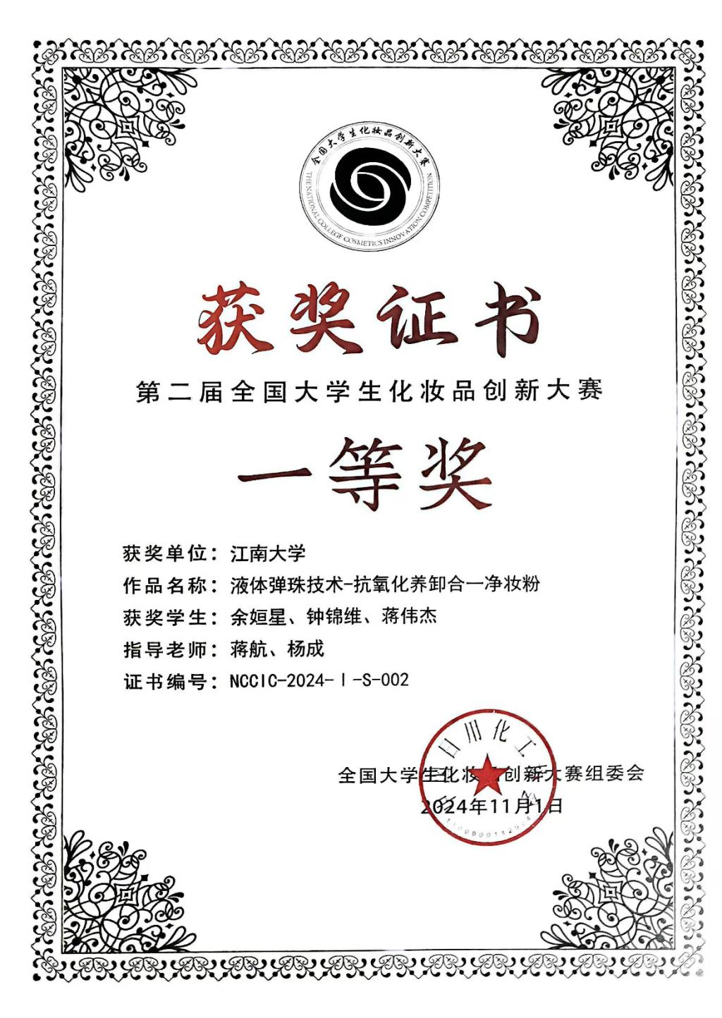 未来,江南大学betway中国西汉姆联官网将继续秉持“创新驱动,科技引领”的理念,以赛促学、以赛促教,推动产学研深度融合,努力将前沿科研成果转化为实际产品,培养更多高水平复合型人才。让我们共同期待江南学子在美妆创新领域绽放更加璀璨的光彩,创造新的辉煌!