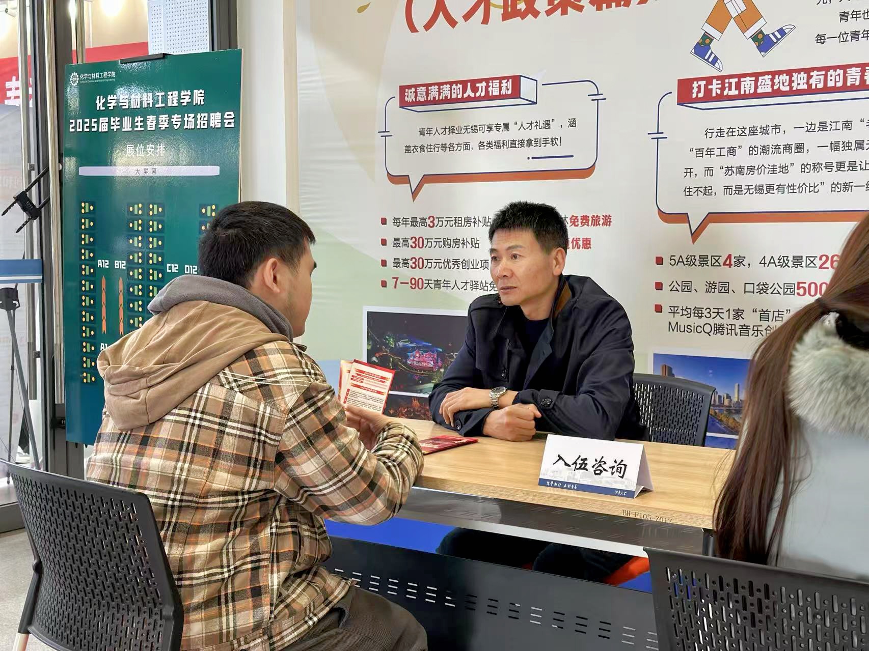 招聘现场还设置了“一站式”就业服务专区,包含征兵入伍、基层就业政策宣讲和简历优化等咨询点。专区由专业老师为学生提供一对一服务,包括对职业规划、岗位选择、面试技巧等进行指导,帮助学生提升就业竞争力。许多学生表示经过老师的指导,简历更加突出个人优势,面试更加游刃有余。