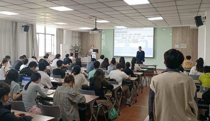 报告会上,李景虹院士介绍了清洁能源主导的资源化回收方法是将来环境水治理最可持续的研究方向,深入剖析了电化学在水处理的资源化、能源化利用中的关键作用,提出电极界面构造与物质高效转化是同步实现污水处理与能源回收高效电化学转化过程的两个核心要素,并针对目前电能转化效率较低的瓶颈问题,通过调控电催化材料的组成与结构,提高电极反应动力学,加快电子定向迁移,降低电子转移能垒,并通过传质过程强化,实现对水污染物资源化和能源化的同步高效电化学转化。在此基础上,通过对反应器等装备的设计,推动相关技术在工程实践中应用,取得了重大的成果。李院士的研究涵盖了电化学在水处理的资源化、能源化利用中的原理创新、装备设计及工程应用的全链条内容,为解决水中污染物高效电化学降解的提供了坚实的基础,对推动环境电催化的发展具有重要意义。李院士报告内容深入浅出、精彩生动、创新性突出、启发性深刻,引起了广大师生们积极交流和讨论。