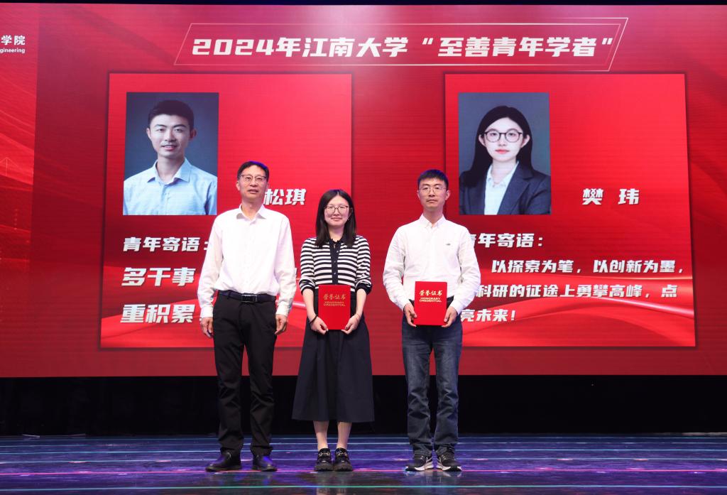 2024年度,我院涌现出一批在教育教学、思政引领和科创育人、学术科研方面得到广大学生认可的优秀教师。国家级青年人才赵媛分享在深耕教育、践行学风建设方面的经验做法并接受表彰。大会对2024年度江南大学“至善青年学者”、优秀论文指导老师、2024年度优秀班主任、教学评价优秀教师、科创竞赛优秀指导教师进行表彰。