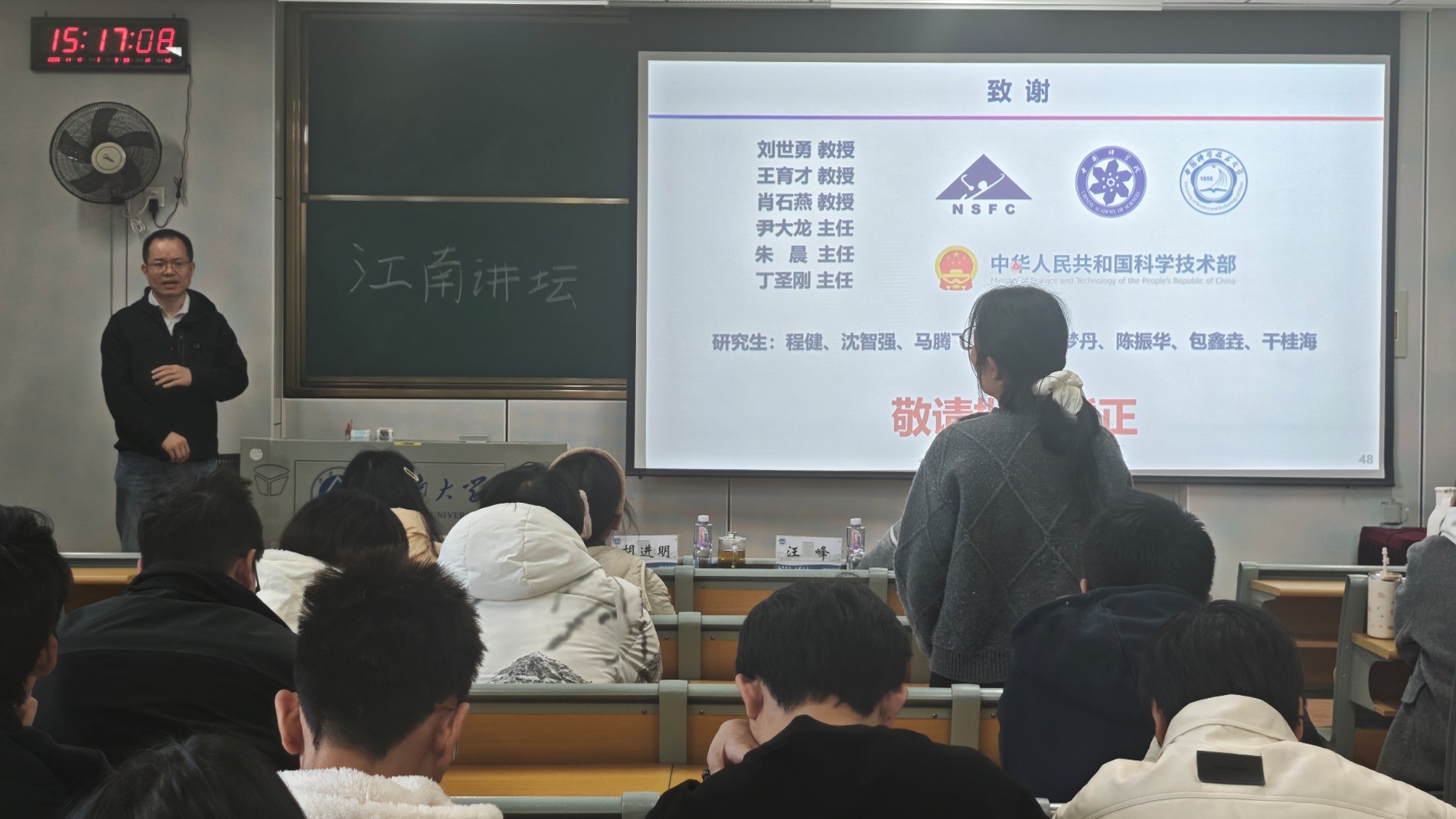 11月19日下午,由江南大学研究生院主办,betway中国西汉姆联官网承办的江南讲坛第一百五十八讲和第一百六十讲学术报告在江南大学东氿校区知行楼C202教室举行。讲座由化工学院副院长马丕明主持,中国科学技术大学化学与材料科学学院胡进明、汪峰教授主讲,内容涵盖气体药物靶向递送、手性螺旋超分子功能材料等多个前沿领域,现场学术氛围浓厚,与会研究生热情高涨。