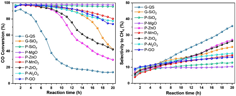 评论观点文章认为:铁基费托合成在反应过程中十分容易发生无定形碳和石墨碳的快速集聚,导致催化剂失活和选择性变化,研究者通常设法通过助剂调节、载体改性设计或活化过程优化来改善积碳引起的各种问题,然而这些策略使得合成和操作过程变得复杂,限制了工业应用过程中期望的简易规模化。江南大学刘小浩教授及其同事证实铁基催化剂与氧化物的简单混合即可重构铁基催化剂的表面化学,该过程能重新分布催化剂表面的电子密度,而不只是酸性,这将决定氧化物能否减慢“碳的成核”。二氧化硅(SiO2)和氧化镁(MgO)被证实作为特别有效的氧化物提升剂,这对长期以来的关于酸-碱性对费托合成反应性能的影响的讨论变得微妙。这个发现可延伸拓展到其他催化体系,特别是当过度碳化、结焦或者碳化物形成,从而破坏催化剂的长期稳定性