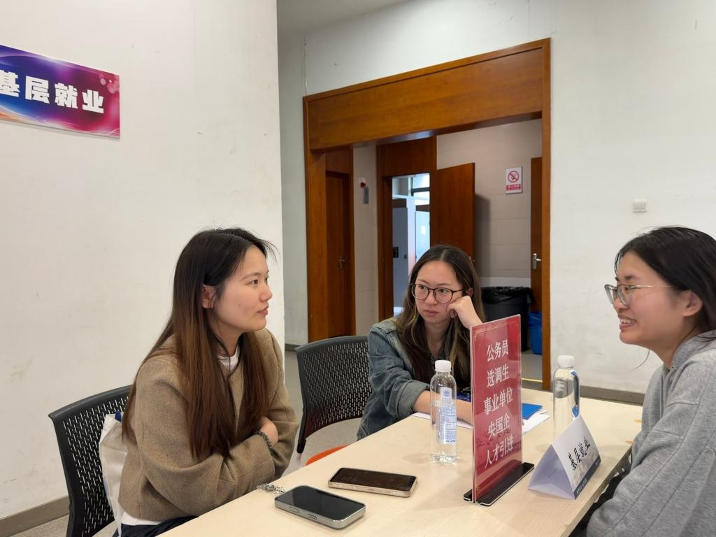 招聘会现场设立“一站式”就业服务专区,提供征兵入伍政策宣讲、基层就业项目解读、简历优化指导等多项优质服务,为学子们提供一对一精准指导。