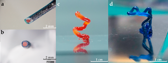 图3 a-b.具有内外色彩的线条;c.螺旋状结构;d.“M”状悬臂梁结构