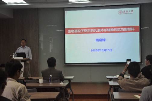 2020年10月15日下午,东华大学的武培怡教授和隋晓锋教授来化工学院学术交流,并在化工楼A316报告厅给师生们奉献了一场关于“智能弹性体和纤维”和“生物基粒子稳定的乳液体系辅助构建功能材料”的精彩学术报告。本次报告由副院长马丕明教授主持,化工学院的九十余名学生参加。马丕明教授首先对武培怡老师和隋晓锋老师来访表示热烈欢迎,接着武老师和隋老师简要地介绍了其研发团队的工作现状和研究方向。