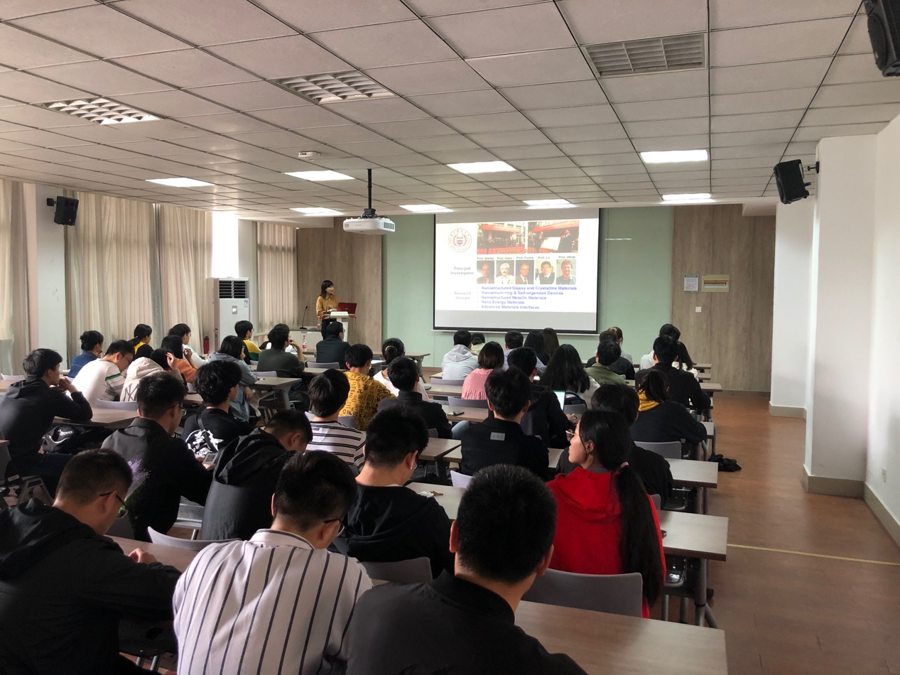 2021年4月28日下午,南京理工大学吉庆敏教授应邀来我校进行学术交流并在化工楼A316学术报告厅进行了一场题为“利用富勒烯的溶液自组装过程调控超分子纳米结构及其应用性能开发”的学术报告。