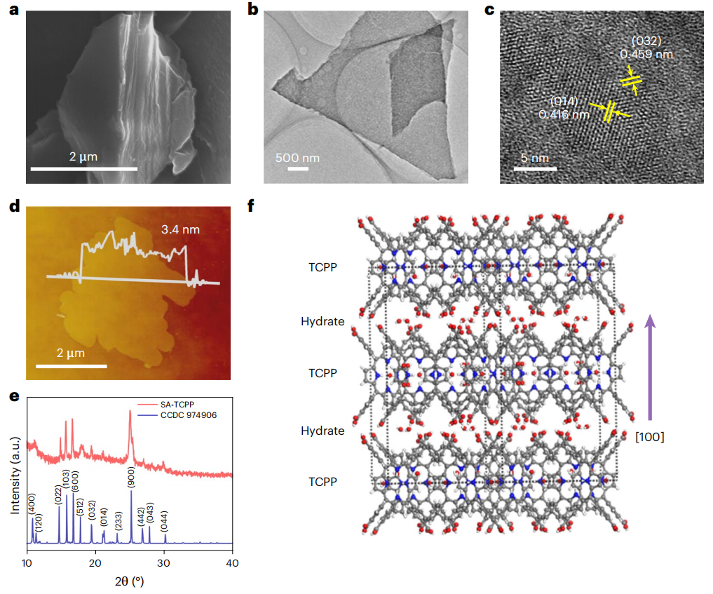 图1:SA-TCPP纳米片的结构和形貌表征。
