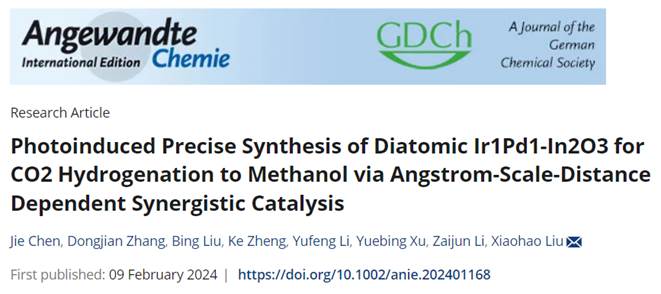 近日,江南大学化工学院刘小浩教授团队在开创光诱导金属原子埃米尺度靶向定位合成邻近异原子位点(原子数2)催化剂的普适性技术应用于CO2加氢制甲醇的研究工作中取得突破性进展,这一研究成果在化学领域顶级期刊《德国应化》(Angew. Chem. Int. Ed.,2024, 63, e202401168上发表,并被选为封面文章。该论文化工学院博士研究生陈杰为第一作者,刘小浩教授为通讯作者。