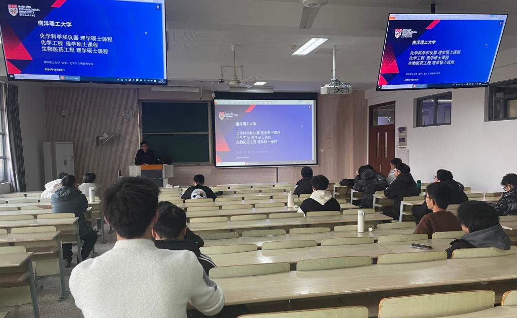 自2024年6月化工学院与南洋理工大学签署“3.5+0.5+1”本硕双学位联培项目以来,3名化工学子成功收到录取通知,已于近日正式入学。此次宣讲交流会拓宽了化工学院学生的国际视野,进一步激发了学生对海外深造的兴趣和热情,也为两校之间更深层次的合作交流搭建了良好的平台。