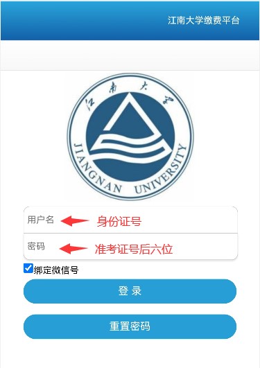 “江南大学缴费平台”网址:http://pay.jiangnan.edu.cn/payment/
