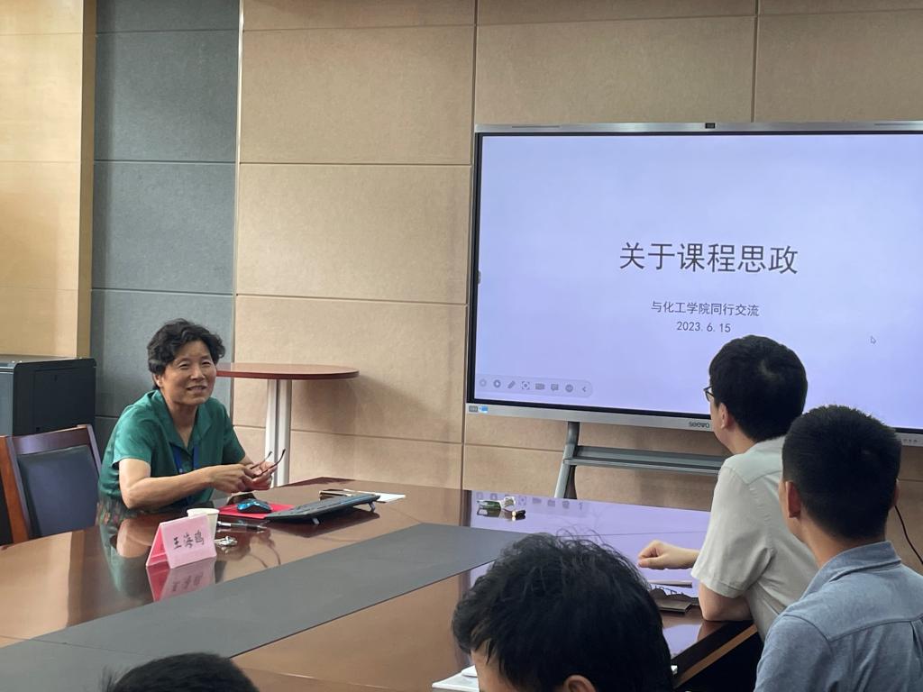 研讨会上,夏碧华老师分享了东为富教授参加第二届全国本科院校化工类专业教师课程思政能力竞赛的准备过程及比赛经验;钮腾飞老师作题为《创新驱动下的课程思政》交流分享;丁玉强老师传授了如何在平时的教学中融入课程思政的教学经验。教师们表示,专业课程是“本”,课程思政为“用”,教师要将专业知识传授与思想政治教育有机融合,发挥课堂主渠道功能,既要给予学生严格的学科基础训练,又要融入课程思政,达到润物细无声的效果。